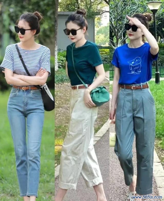 肤色有点暗的女生不妨试试蓝色条纹短袖T恤,看起来干净分解还卓著显白,再配上浅蓝色牛仔裤,会给东说念主极新的嗅觉,显得轩敞又减龄,卓著耐看。淌若思显瘦的话,不错挑深色系的T恤,像玄色、藏蓝色之类的,既显得高档又很显瘦,搭配淡色系的失业裤就更显芳华,也更有高档感。